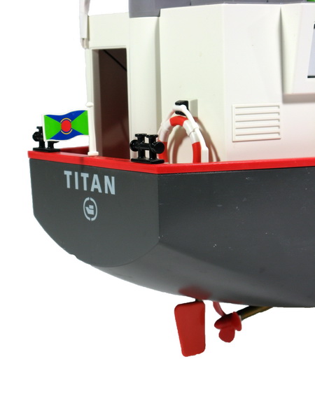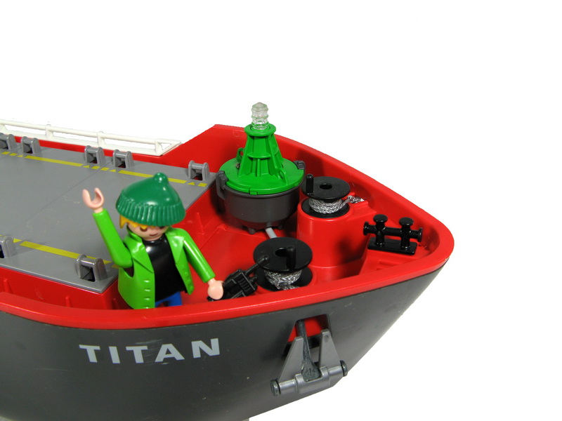 Die Titan ist ein Schiff von Playmobil, welches ich kurzerhand mit Motor; Stevenrohr + Schiffsschraube und Ruder ausgestattet habe. Eine 2 Kanal Fernsteuerung eingebaut, 7,2 V/1600 mAh rein fertig. Leider gibt es die Titan von Playmobil nicht mehr, aber Playmobil hat einige neue Schiffe, welche sich sicher auch umbauen lassen. Ich habe mir noch eine zweite Titan besorgrt und ebenfalls umgebaut. Damit man sie unterscheiden kann, wurde sie am Rumpf und Dach gelb lakiert und sie hat eine Besatzung der Familie von Käpt'n Blaubär bekommen.