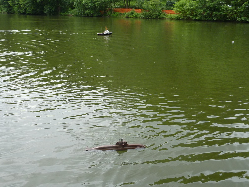 Bei der zweite Probefahrt ging nun alles wie gewünscht. Die U31 ist jetzt oft mit am See, da sie durch die 80 cm Länge leicht zu transportieren ist und sich bis jetzt durch die hohe Zuverlässigkeit und Robustheit auszeichnet. Natürlich ist das Boot am See auch ein Blickfang, wenn ich auch zugeben muss, dass die Tarnbemalung sich natürlich auch auswirkt. Das Boot ist bei einer Tauchfahrt im See kaum zu sehen. Nicht nur für das Publikum, auch unsere Fische im See halten das Modell wohl für ihren Kameraden.